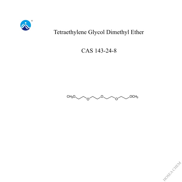 Tetraethylene Glycol Dimethyl Ether is used as an excellent solvent for alkali gold hydrides, in various chemical reaction processes such as alkylation condensation and reduction. Because this compound has Lewis basicity, it can selectively absorb acidic gases, and is used for the purification of gases such as syngas, natural gas, and ethylene gas, as well as as a stationary phase in gas chromatography.
