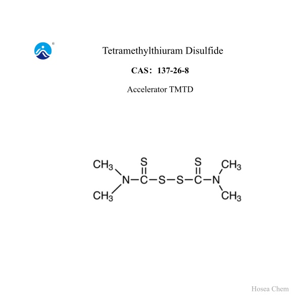 Accelerator TMTD is a white to off-white powder (granules) with a relative density of 1.29. It is soluble in benzene, acetone, chloroform and carbon disulfide, slightly soluble in ethanol, diethyl ether and carbon tetrachloride, and insoluble in water, gasoline or dilute alkalis. When heated together with water, it decomposes to form dimethylamine and carbon disulfide, and has an irritant effect on the respiratory tract and skin.